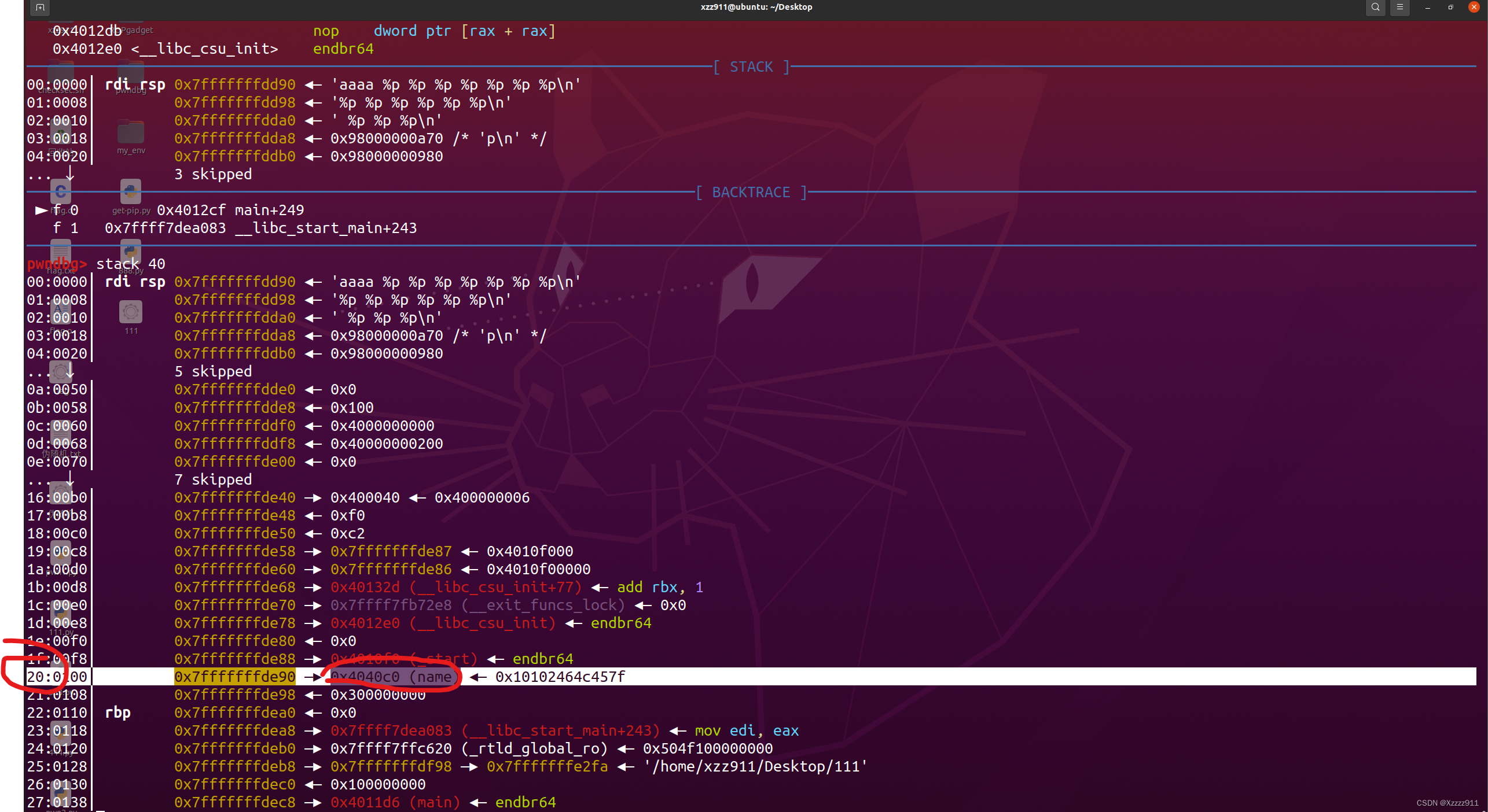 rdi_addr = 0x4012a3 ret_addr = 0x40101a vuln = elf.sym['vuln']