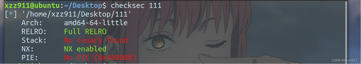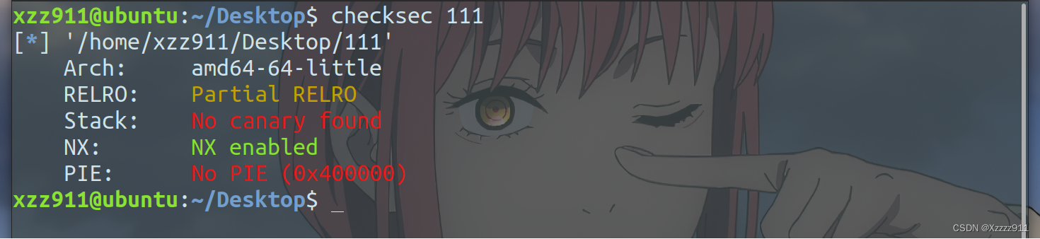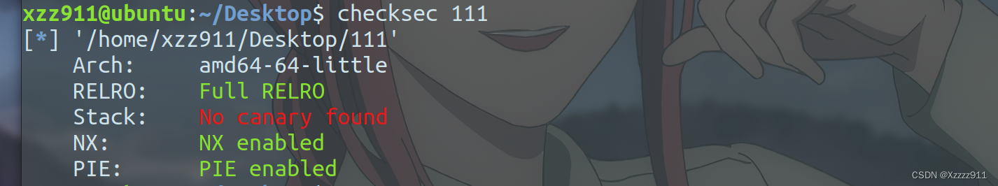 查看保护机制,开启了 PIE 地址随机化,每次运行的基址都不一样,但是 PIE 不会随机化地址的低 12 位(也就是说后三位地址是固定的),所以可以采用 partial write,爆破倒数第四位,十六分之一的成功几率