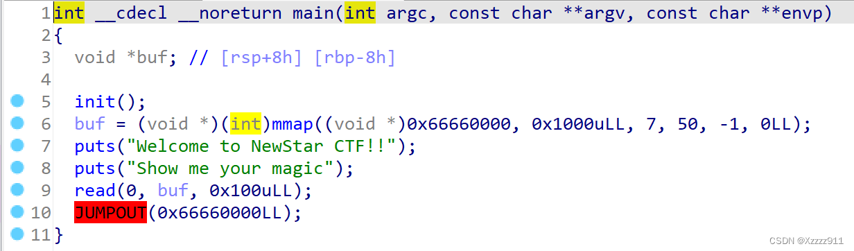 IDA 反汇编也比较明显,就是往 buf 里面写入 shellcode