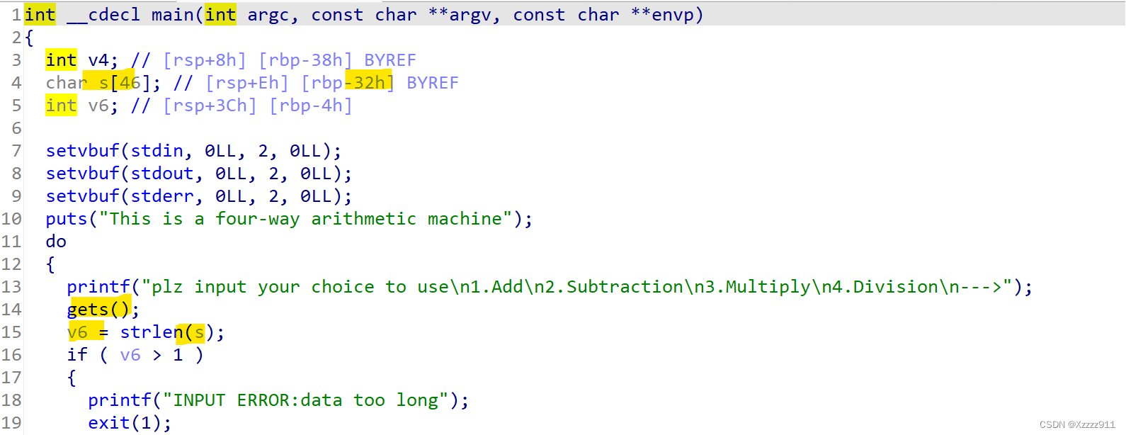 ida反汇编一下,代码审计发现出现了栈溢出,并且还有一个后门函数,想法就是先绕过 if 语句,再调用后门函数,获得shell
