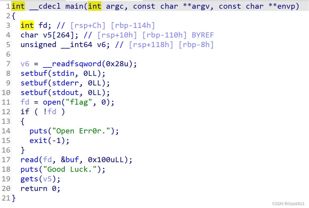 IDA 一下,发现 gets 函数造成了溢出,并且 flag 存在 buf 里面